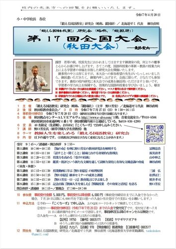 「鍛える国語教室」研究会(略称,「鍛国研」)第17回全国大会(秋田大会)案内